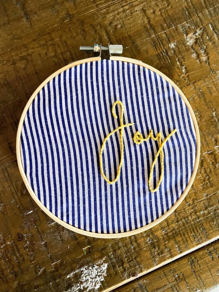 Then we went to the most magical section, which was picking the threads. I could spend hours just rummaging through all the colors that came to life so vibrantly. After picking a few six-stranded “flosses”, but wanting all of them, we headed over to get the right needle and scissors. Who knew having the right shears would make a huge difference? But these two simple items would assist me in stitching simply. We brought it all up to checkout and I don't remember the total or much about the ride home, but I do remember getting home and having her help me pick out my first design. We would get it set up, and iron it onto the fabric. She showed me how to make it snug and tight in the hoop and then how to separate the strands down to just three to create a less thick approach to my stitch. And I started my journey. She helped me to gain patience and perspective while stitching. She showed me how to find this not as work, but rather as joy.