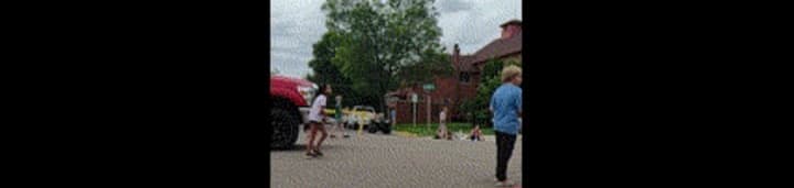 Then we went to our daughter's family's second parade for the day. It was supposed to start at 2:00. We thought we were getting there early to get a good seat but it had already started. Even though it was short for us it was fun!