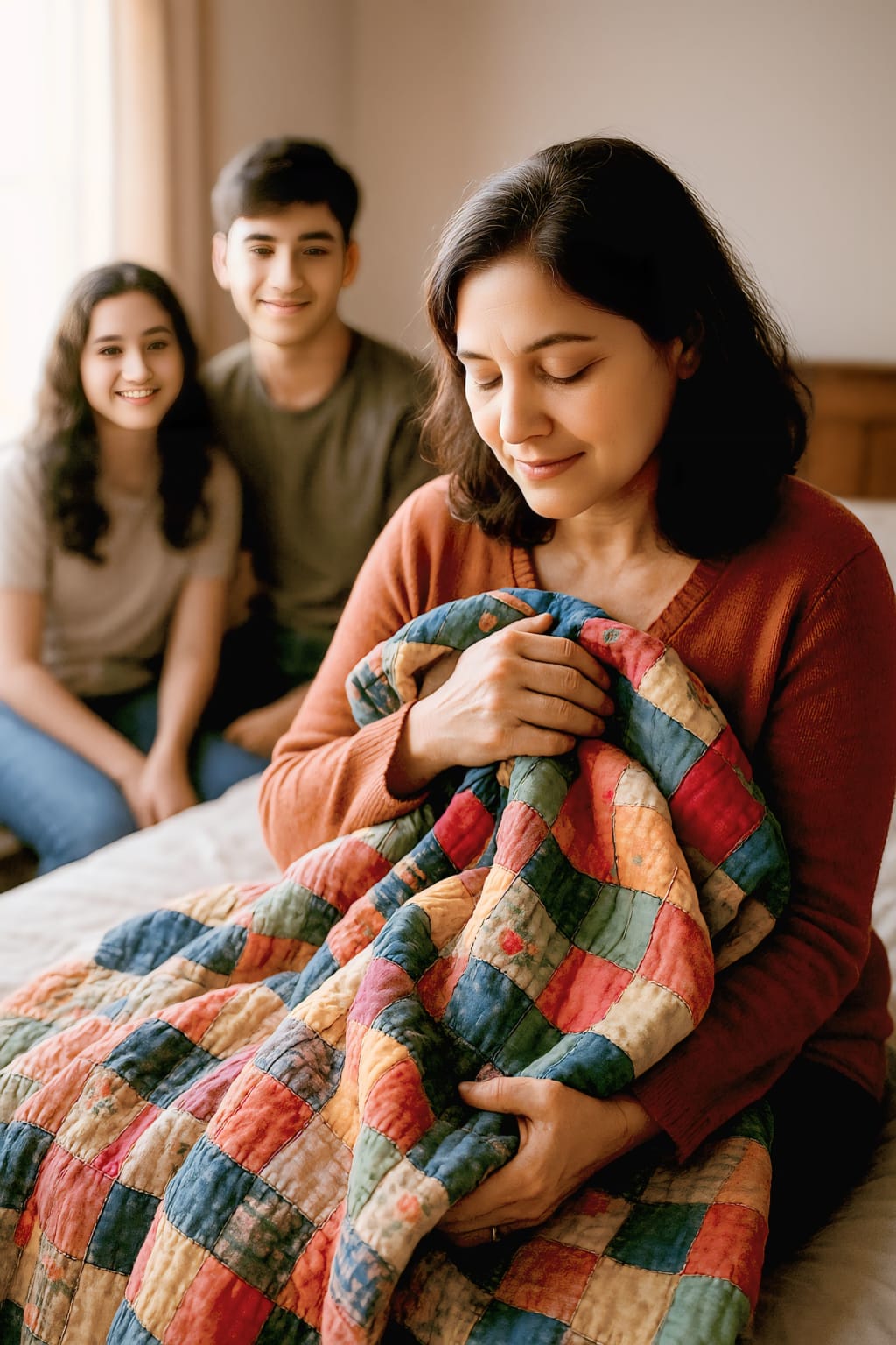 That night, no one spoke of school, of social media, of growing up. They simply lay close, warmed not just by cotton and thread, but by memory.