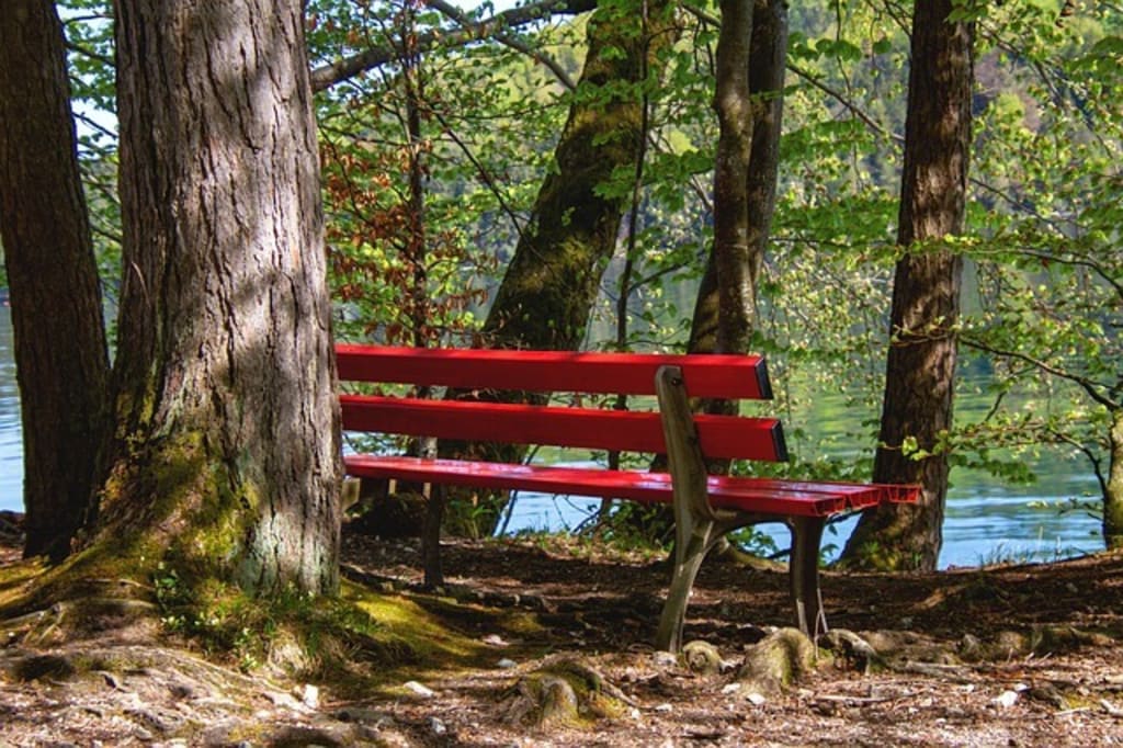 The bench, now a ripe old sixty-three years old, was waiting for them, freshly painted bright red. Riverview Avenue had recently been built up with fresh soil, and the ground under the bench had been renewed as well. It would never do to let it sink into the earth.