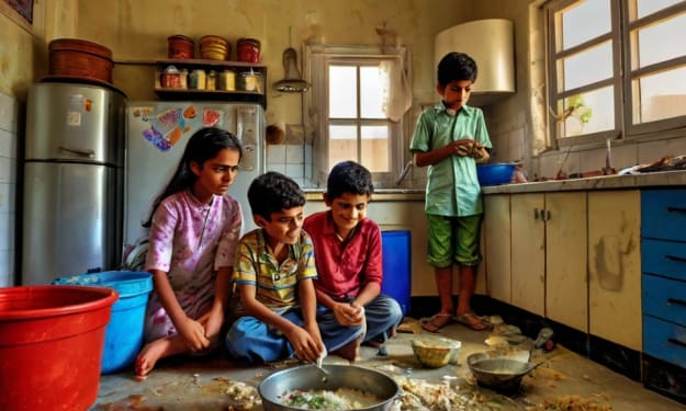 The older boys—Maaz and Anas—sat with glue and strings, joining flags together. Abdul Rahman and Noor helped them lay the lines straight so the glue could dry quickly. Earlier that morning, Aunt Zubi and Baji had prepared a big pot of homemade glue for the kids to use. Now, they had plenty to decorate as much as they wanted.