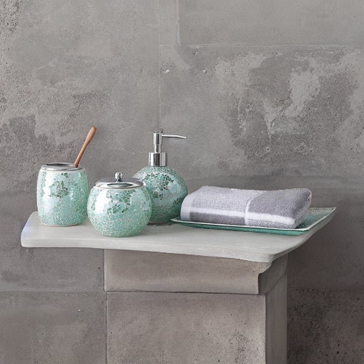 If you're redesigning your bathroom or simply looking to elevate its style, Turquoise Mosaic Glass accessories must-have as they will add elegance to your bathroom.