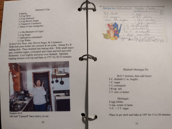 Wow! I learned a lot about rhubarb, good things to know. And what a wonderful tribute to your Mother. Creating a cookbook of her recipes. I have a few choice dishes memorized but I wish I had my Mom's chili recipe, it was amazing. Thank you for sharing a little part of your Mom with us.