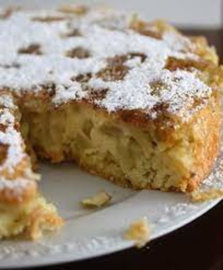 Sharlotka is a popular apple cake that is delicate and moist. It is prepared with eggs, sugar, flour, baking soda, and apple slices. Some people add honey or cinnamon for flavor. When served it is sprinkled with powdered sugar.