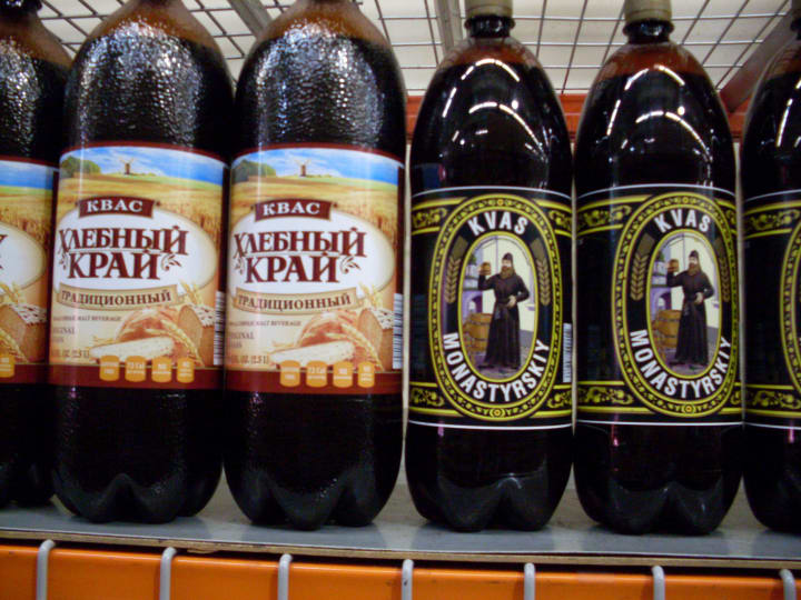 Kvass is an ancient, traditional Russian beverage made from buckwheat meal, wheat, rye, rye bread, or barley. It can be prepared from any ingredient that can be fermented. It has a low alcohol content and is classified as a non-alcoholic beverage in Russia.
