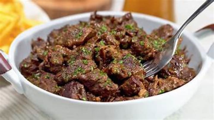 Carbonnade is a traditional stew that is prepared with beef and dark beer. The chunks of beef are combined with dark beer, onions, and flavored with thyme, garlic, and bay leaves, then stewed until it forms a thick sauce.