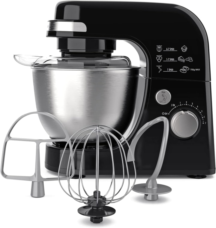4-Quart Stainless Steel Bowl: This roomy 4-quart mixing bowl made of stainless steel has enough room for a wide range of cooking activities. With this mixer, you can knead bread dough or make batches of cookies with all the space you need for your favourite recipes.
