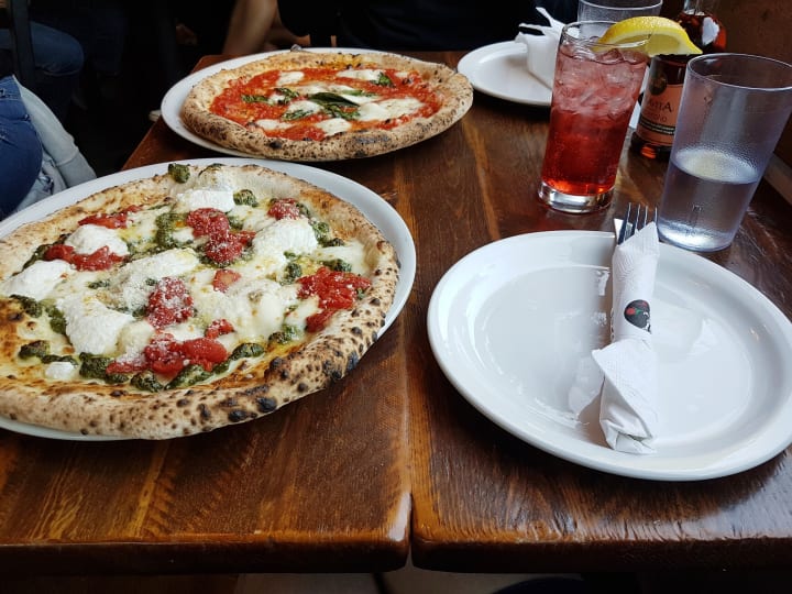 Their menu is vast! It includes lots of things from starters, appetizers, salads, and seven types of pizzas, including Classics (such as marinara), Le Sorelle (such as Franki), Vegetarian (such as the Mediterranean), and Favourites (Diavola).