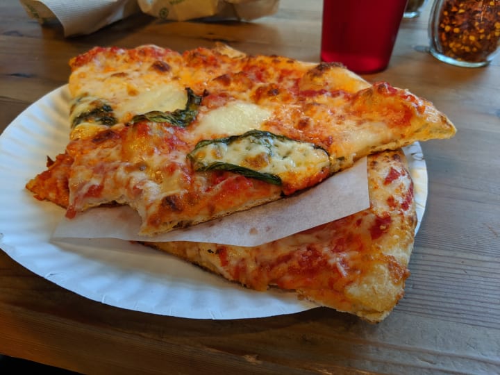 Are you looking to eat slices of pizza instead of a whole pizza? Well, straight outta Brooklyn is the perfect choice for that. Get there, grab a piece, and continue your outdoor journey. Here, the crust is thin, and slices are big, so you have to fold them to eat them.