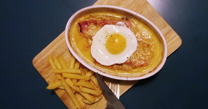 The Welch or Welsh complet is the French version of the Welsh rarebit. The sandwich is made by boiling beer in a pot, adding cheese (usually cheddar) to the pot and once melted, poured over a toasted slice of bread and ham. The sandwich is cooked until it gets golden and then a fried egg is placed on top.