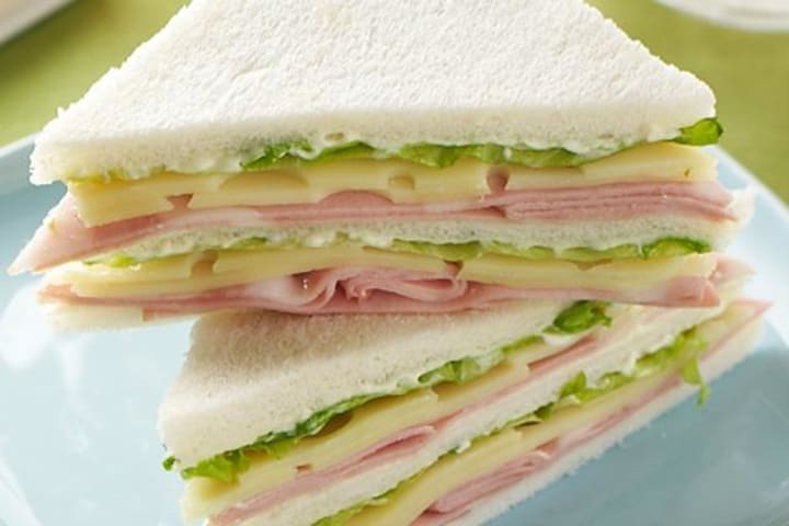 Egg salad sandwiches are popular American sandwiches. Hard-boiled eggs are peeled and chopped and combined with mayonnaise, salt, and pepper and placed between two slices of bread which can also be toasted.
