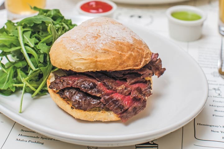 The Pastrami on rye sandwich is New York’s signature sandwich. These sandwiches are made with rye bread topped with hot pastrami slices and spicy mustard. They are served with kosher dill pickles on the side.