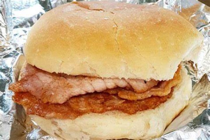 Peameal Bacon Sandwich originated in Toronto, Ontario. It consists of thick slices of fattey and crispy peameal bacon on a Kaiser bun. The bun soaks up the juices from the bacon. The sandwich also includes mustard. Other versions add cheese, eggs, tomatoes, or lettuce.