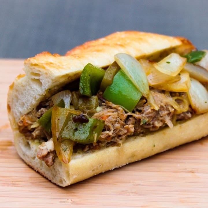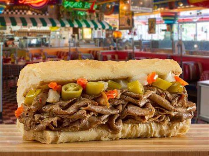 Italian beef sandwiches are popular Chicago, Illinois sandwiches. Thinly sliced and seasoned roast beef is placed on an Italian-style roll. Then topped with pickled relish or roasted green bell peppers. The sandwiches are typically dipped au jus on both ends or soaked in the flavorful gravy.
