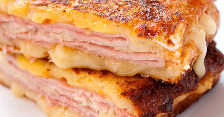 Monte Cristo sandwiches consist of two slices of white bread filled with cheese and ham, turkey, or chicken meat. The sandwiches are dipped in beaten eggs and fried in butter.