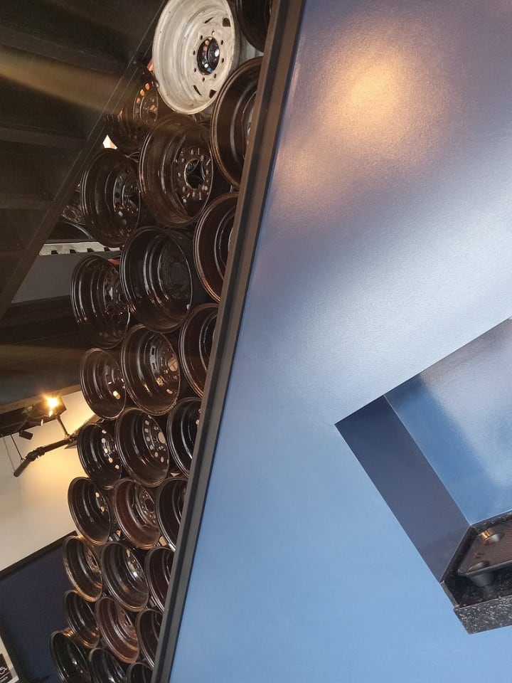 The most unique thing about this restaurant is that it's designed to look like a car garage with a theme that has something to do with cars down to its menu items.