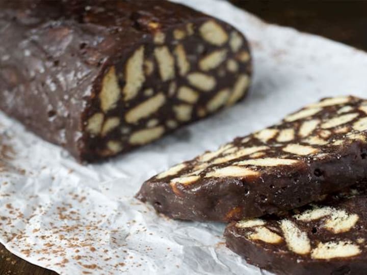 Tinginys is an authentic Lithuanian delicacy that is similar to the famous Italian chocolate salami. This is a no-bake dessert that is prepared with crumbled cookies, cocoa, condensed milk, butter, and sugar and then shaped into a long, round form and left to set.