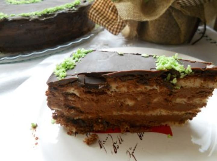First, the chocolate biscuits are softened in milk and then layered with cream cheese and dulce de leche. Making chocotorta the biscuits can also be softened in chocolate milk, coffee, or coffee liqueur.