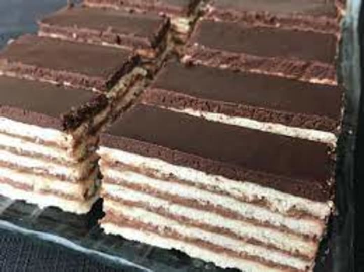 Madarica is a traditional Croatian layer cake. The name of the cake means Hungarian girl. This cake is usually prepared for festive occasions. The cake is made with layers that are coated in chocolate-infused cream and topped off with a dark chocolate glaze. It is believed that this Croatian dessert was based on traditional Hungarian layer cakes.