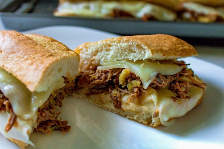 Ensure the meat is not dripping wet when you put it on the rolls. If not, the bread will become soggy. Also, you can add more pepperoncini before or after baking if you would like.