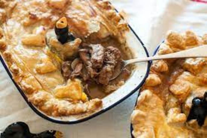 Steak and kidney pie is a classic dish with beef steak and kidneys baked in a pastry shell. The kidneys can be beef, lamb, or pork. It is a delectable dish that blends tender beef, kidneys, and a flavorable gravy. It can be found in British pubs.