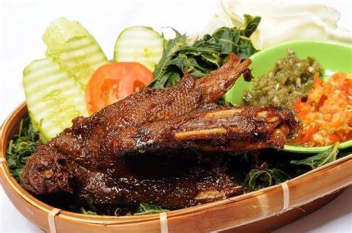 Fried duck is an Indonesian delicacy that is crispy on the outside and tender on the inside. The dusk is cut into pieces, boiled or steamed and then deep-fried until crispy. Before the duck meat is coated in spices like garlic, ginger, turmeric, galangal, or coriander.