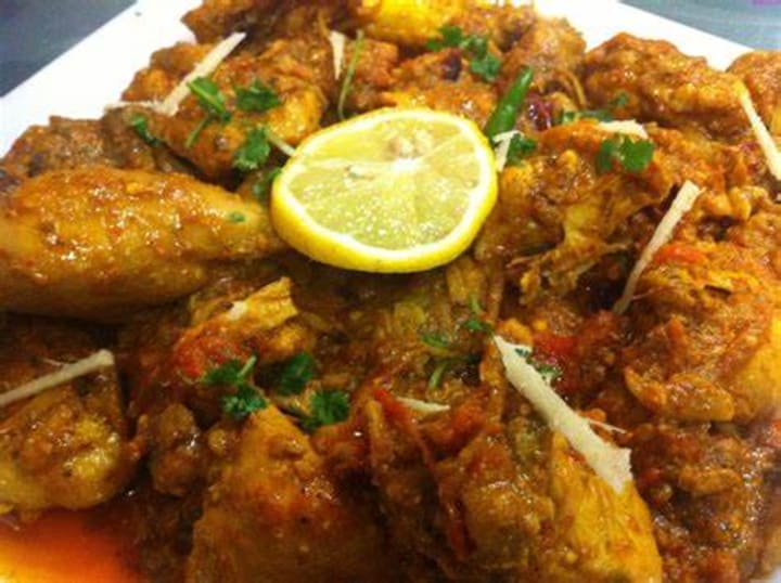 Chicken karahi is a poultry dish popular in Pakistan and North India. Karahi refers to a thick, deep-cooking pot similar to a wok. The dish is made with chicken, tomatoes, garlic, ginger, red chili powder, cumin, garam masala, all spice, and cardamom.