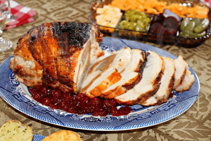Turducken is an American-Canadian dish. It is made with deboned turkey, deboned duck, and deboned chicken. All of the birds are rolled into one and stuffed with three kinds of stuffing layered between the meats.