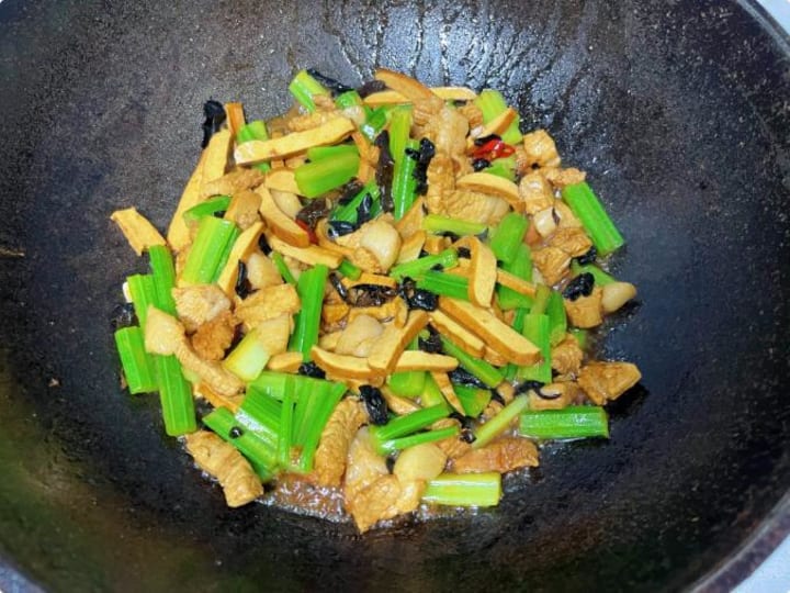 • Step 3: Crank heat. Add celery/mushrooms; stir-fry 30 sec. Return pork, pour sauce.
