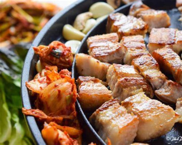 Samgyeopsal, or grilled pork belly, is a popular Korean BBQ dish that offers a delightful combination of flavors and textures. It involves grilling thick slices of pork belly to perfection and enjoying them wrapped in lettuce leaves with various condiments.