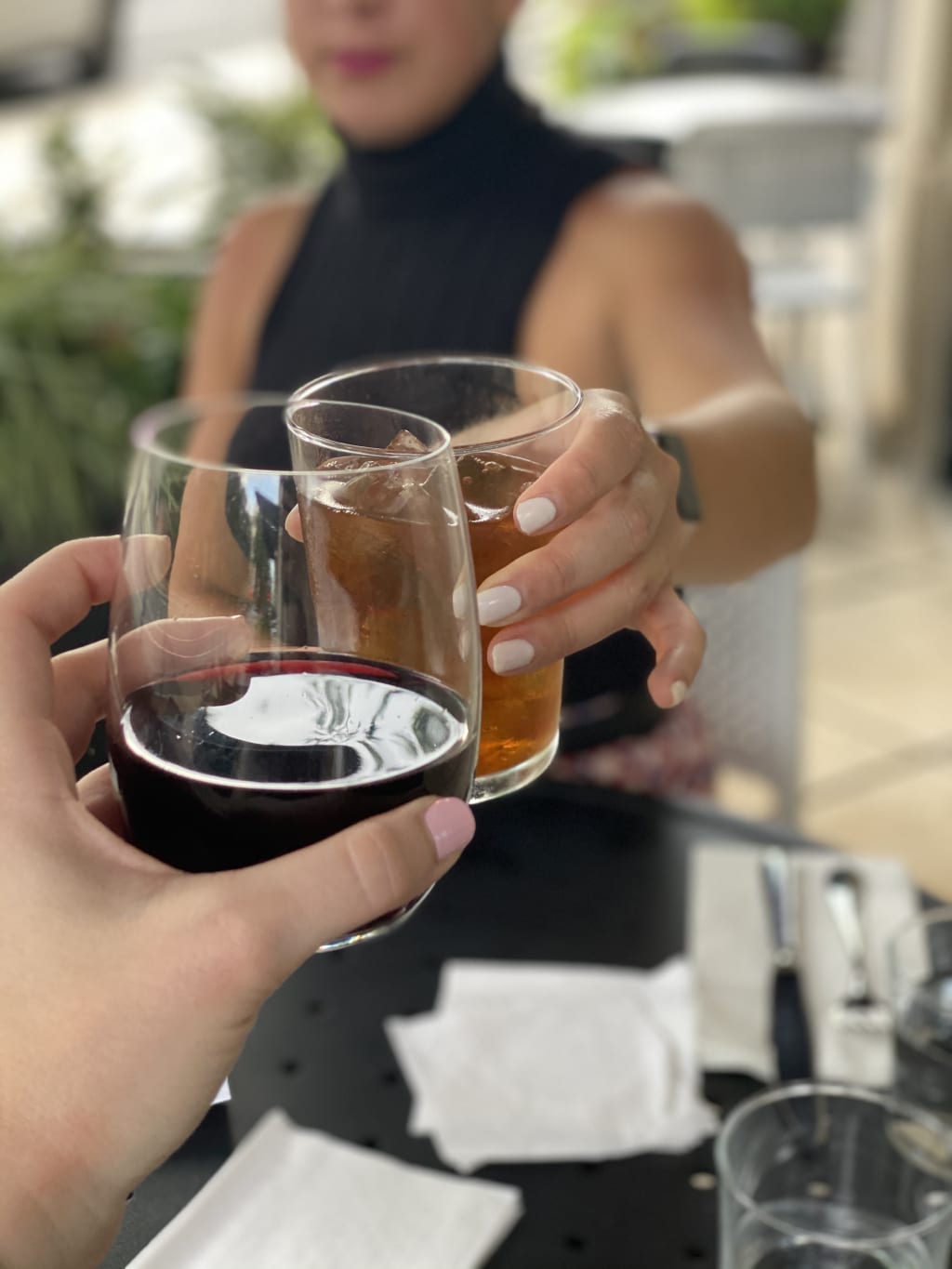 After we were seated, Seth returned with a sheet of paper that detailed how the hotel was handling their reopening and included a QR code for us to scan and view on our phones. He set down a bottle of chilled still water with glasses and silverware wrapped in paper napkins. We scanned the menu and settle on a few things from each section of their menu. While they’re offering a pared down version of what they would normally serve, there is definitely something for everyone. Our server came out to take our drink order, letting us know that they are only serving beer and wine for now. I settled on a chianti and my roommate ordered an unsweet tea.