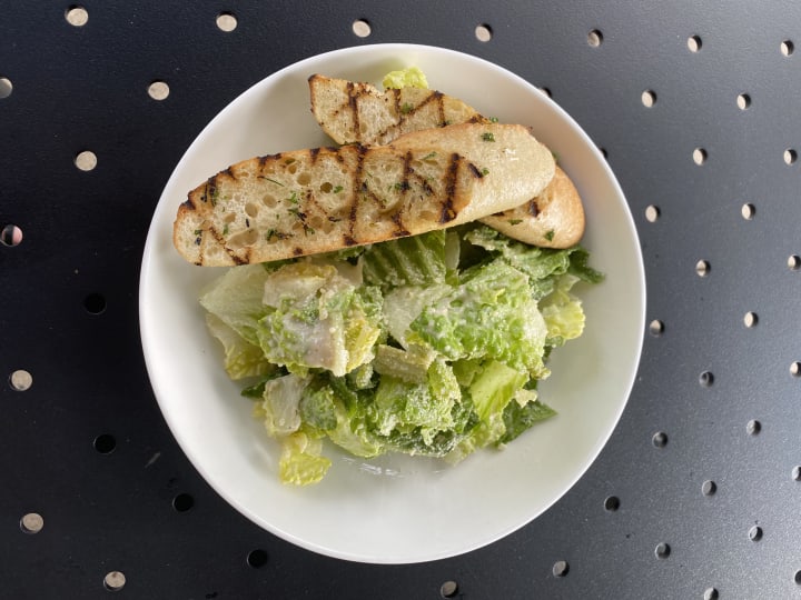 Once our drinks were delivered, we were ready to order. We started with a classic Caesar Salad, their Tomato, Mozzarella Salad, and the Chicken Quesadilla Shared Plate.