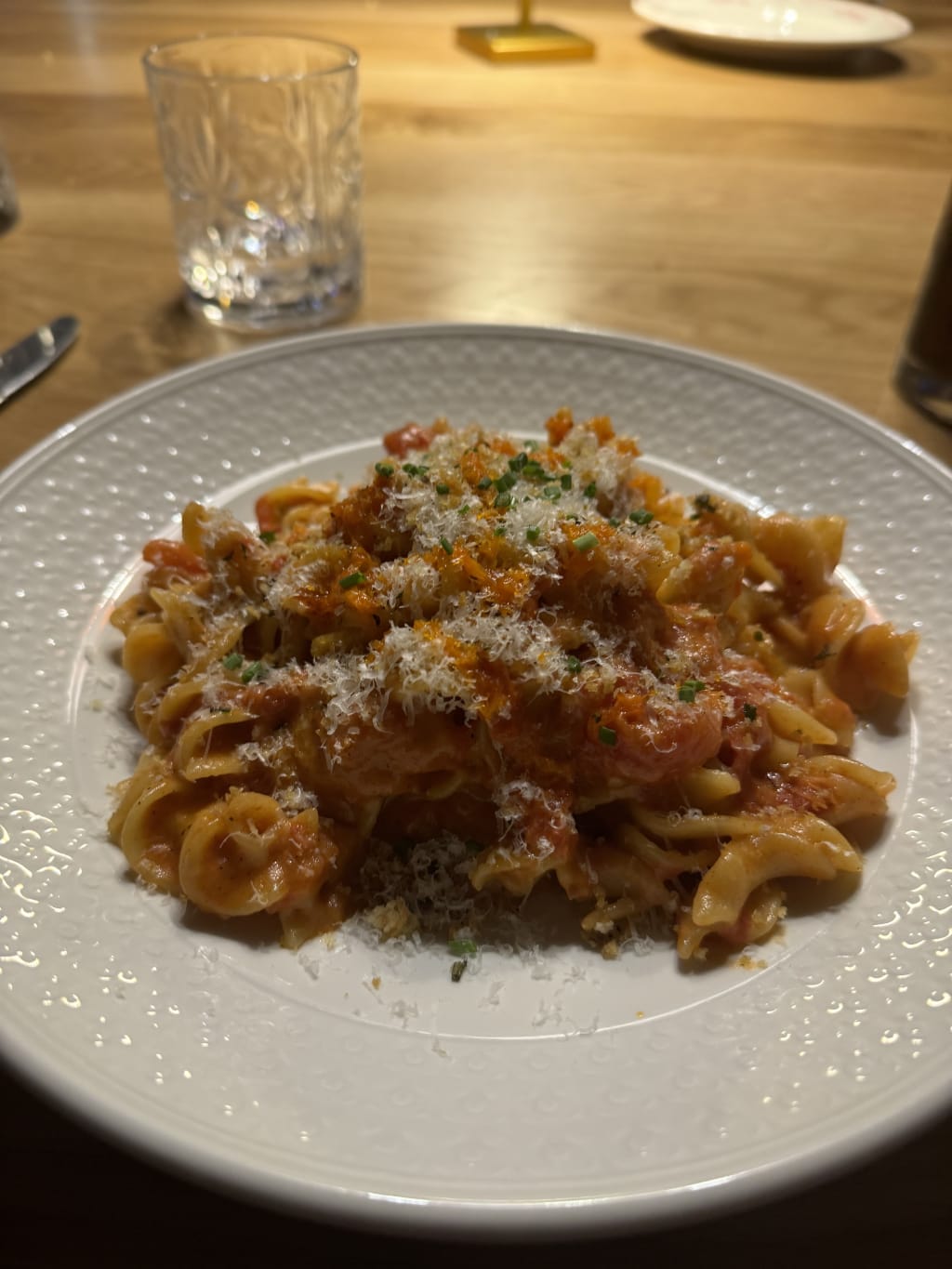 When our entees came to the table all of the pasta was hard. It was undercooked my vodka sauce with some of the worst vodka sauce I’ve ever had in my entire life. They added way too much tomato to the sauce, and not enough cream or vodka. My pasta was clump together all of my pastas were the same dishes were very salty. We also ordered a couple other sides such as broccolini, which was a salt lick. For the owner to own over 50 restaurants I don’t know how he allowed this to leave the kitchen.