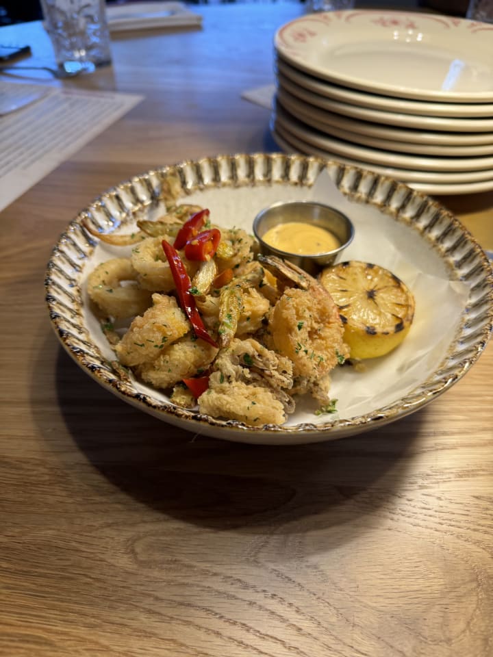 We started to put our order in for appetizers. We ordered them on the menu. We tried there calamari and shrimp appetizer. We also tried the carpaccio another sliced pork dish, and their Aranchini.