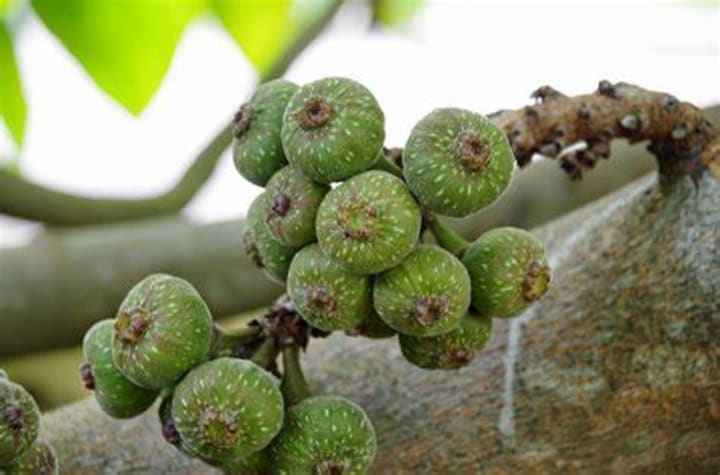 Elephant ear figs are the fruit of an evergreen tree that has large leaves and is native to northern India. It is cultivated in the tropical regions of South Asia and Southeast Asia. The fruit has a round and flattened shape with a reddish brown to copper red color with pale green dots. The flesh is soft, and the flavor sweet. These figs are enjoyed fresh or dried and used to make jam or in beverages. The fruit got its name because the large leaves of the evergreen tree are reminiscent of elephant ears.