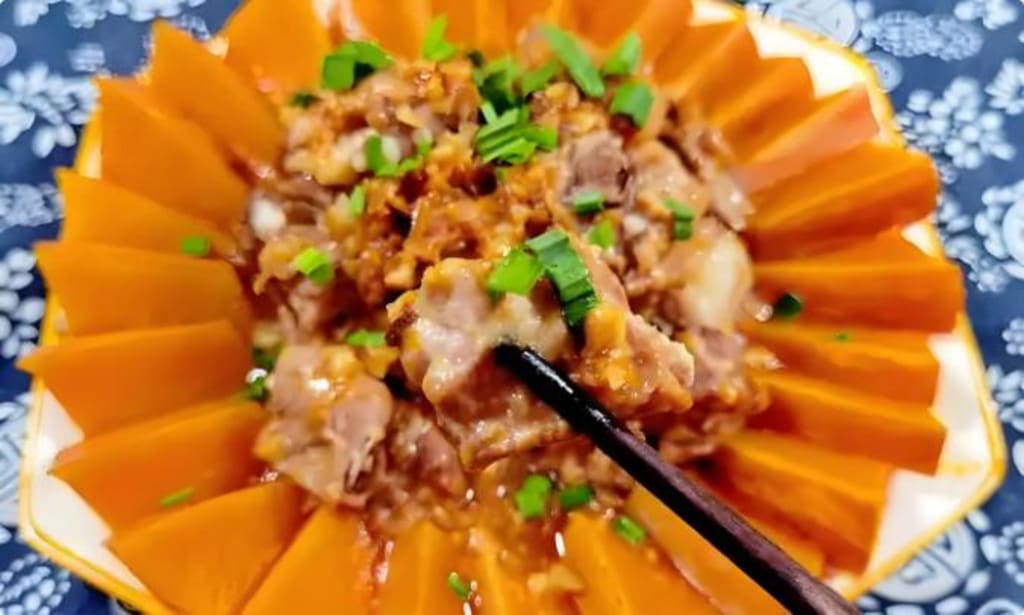 1. Steamed Pork Ribs with Garlic and Pumpkin