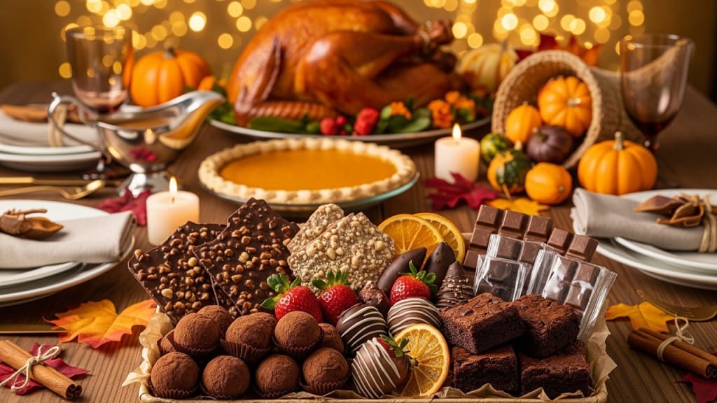 Chocolate is the soul of any Thanksgiving dessert basket. It brings luxury, comfort, and that irresistible indulgence that makes every occasion feel special.