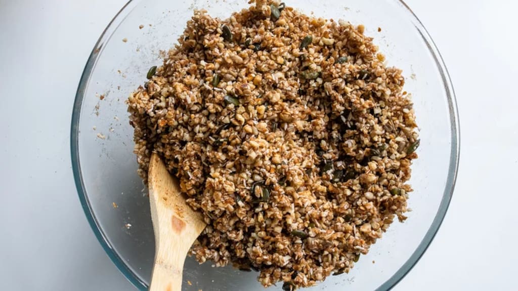 Pour the granola mixture onto a baking sheet lined with parchment paper. Spread it out evenly, then lightly press it down with your palms to help it clump together. Bake the granola for 25 minutes, or until fragrant and brown, after you've spread it out evenly and "clumped" it. Before serving, remove the granola from the oven and allow it to cool fully. Bryant advises that if it feels or appears overly soft at first, don't worry; it will stiffen up after chilling.