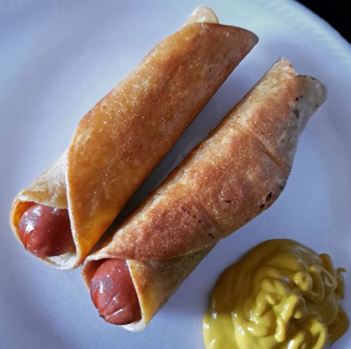 Down field crispy dogs never tasted so good! Trust me, you’ll be eating more than 1! Pour olive oil halfway into a pan on a medium flame. Grab a pack of franks and slice a half slit down the middle of all the franks. Get the American cheese and cut desired slices in halves. After all the cutting place the cheese inside the sliced franks and wrap the frank with cheese in the corn tortillas. Secure all compounds with a toothpick and set in the pan to fry. Watch the crispy dogs for a golden crispy color (they cook quickly). Remove toothpicks, place on a plate with a napkin, and add desired toppings! ***BE MINDFUL OF TOOTHPICKS