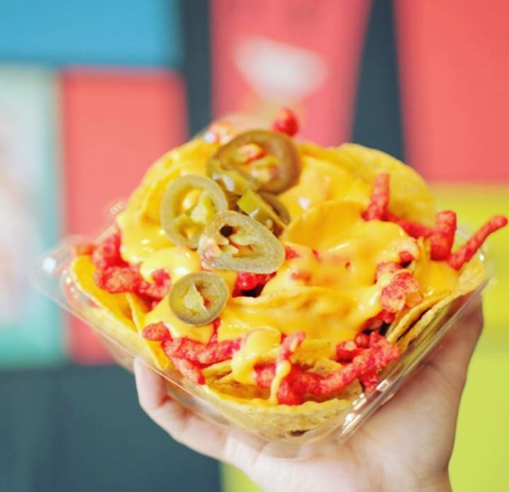 It’s simple yet classic with a taste so irresistible! Mixing Hot Cheetos with regular nachos and topping it off with jalapenos. It’s 1 step easy, yet effective! Warm up the cheese and done (add sliced bacon for some extra flair).