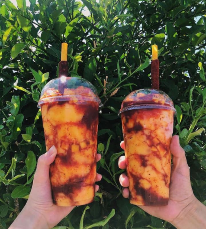 Lastly, mangonadas! Always ready to eat on any given Sunday...or any day at that! For the win these icy delectables are the only holding we condone! Pick up a mangonada base from your local candy store. Depending on your guest count choose the right size catering to you (8oz, 12oz, 24oz ,32oz etc). Grab a cup and cover with chamoy from the rim and the inside. Scoop 2 beautiful round scoops of your mangonada mix into the cup. Add more chamoy on top and begin adding your pre cut pickles, a tamarindo stick, and gummy bears if you’re feeling wild! Top off with lucas and a sprinkle of Kool-Aid for the most fun snack of Super Bowl LV!