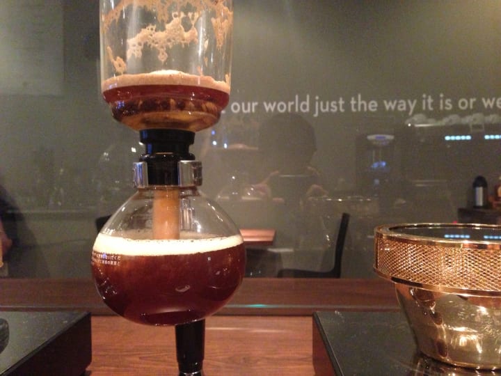 Vespr embraced the third wave coffee mentality from the beginning, aspiring to the highest form of culinary appreciation of coffee, so that one may appreciate subtleties of flavor, bean varietal, and growing region. Distinctive features of being a Third Wave Coffee shop include buying direct trade, single-origin coffee, lighter roasts of the beans, and latte art. It also includes revivals of alternative methods of coffee preparation such as siphon brewing and pour-over brew, which are both available at Vespr.