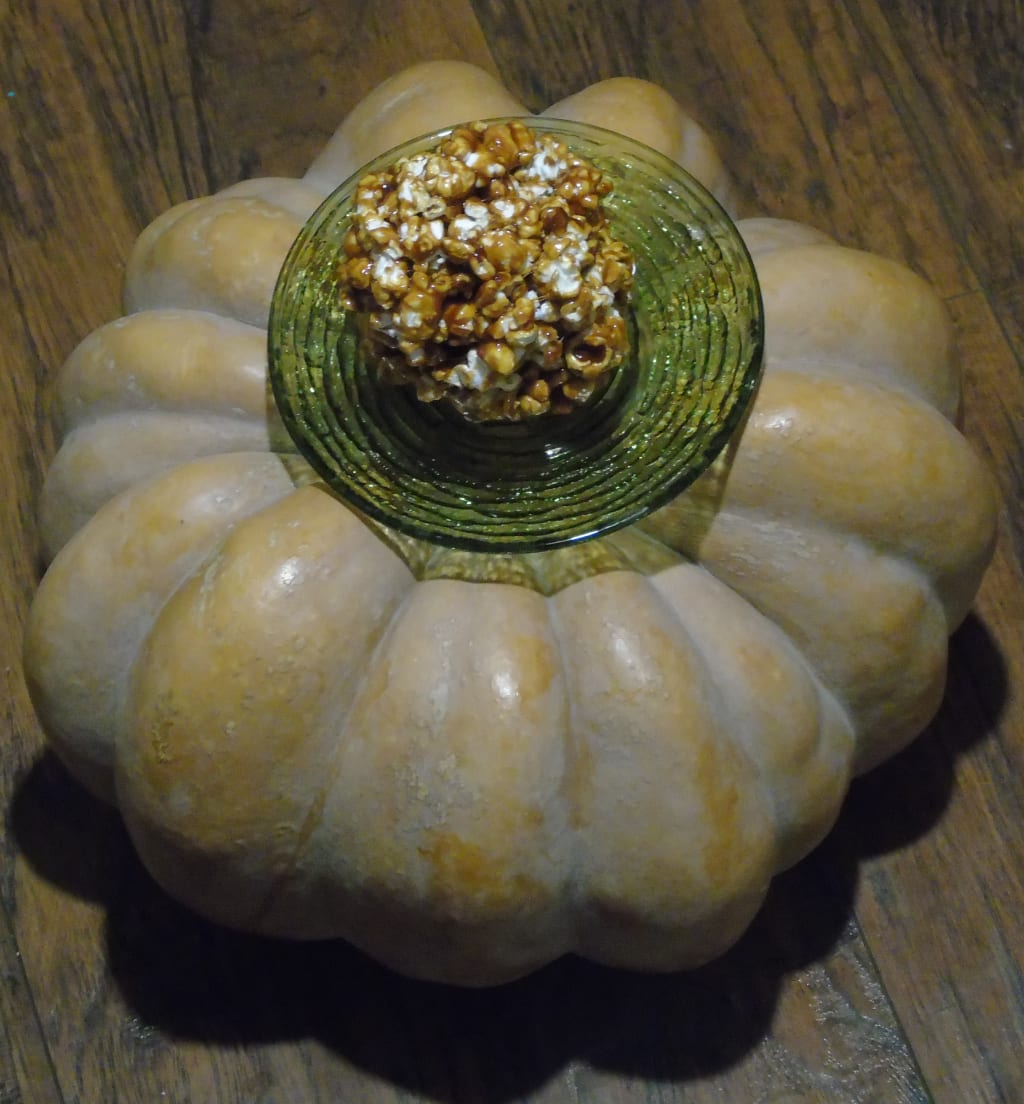 The one fall/ Halloween treat that I remember being made in my home was the Molasses Popcorn ball. It was a treat crafted by my father and was ome that was made for him, when he was a boy, by his mother. Thinking back to childhood memories, molding still hot and sticky candy coated popcorn, the scent of molasses heavy in the air, is one of my earliest kitchen memories. As a parent, it is a little scary to think of an 8 year old handling the liquid magma that is candied molasses, but since I still have finger prints, it does not seem that it caused much lasting damage. As an adult home cook, I can admit that candy making is still a little scary, knowing how easy it can be to burn sugar and the burns molten sugar an leave. However, Molasses Popcorn Balls are a lot easier to make than they may at first seem and can be made in less that have half an hour with a simple family recipe that I am told is very similar to, if not the same as, the one made in the 40s and 50s by my grandmother.