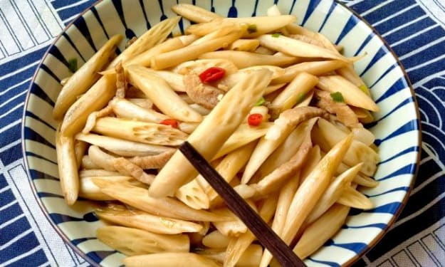 3. Sauté garlic until fragrant, then fry fungus until it "sings" (crackles).