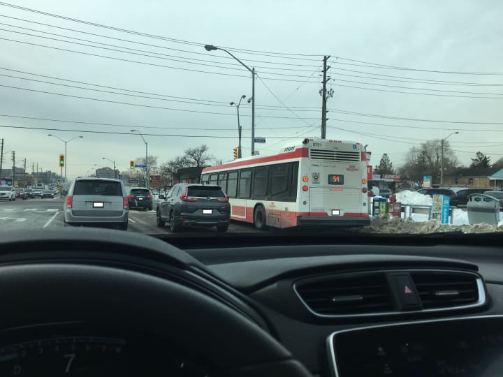 I would like to have your attention here for a quick moment as we spot a rare occurrence here in the City: a TTC (Toronto Transit Commission) bus currently out of service. This is my attempt at sarcasm, I hope it went over well.