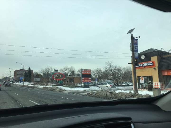 After placing my order for pick up on the phone, I make my way out to the summery weather condition of 3°C. PizzaLand is roughly a 12 minute drive from my house and, fun fact, is about a 5 minute drive away from where I work so it really is like a third home to me.