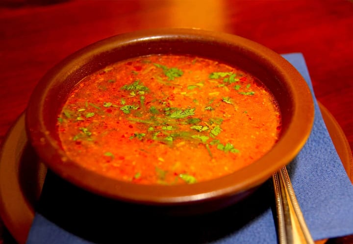 Kharcho is a hearty and flavorable soup that comes from Georgia, a country at the intersection of Europe and Asia. This soup is a combination of beef or chicken, walnuts, and rice, It is traditionally seasoned with a Georgian spice blend known as suneli (a combination of dried blue fenugreek, marigold petals, basil, parsley, fennel, coriander, bay leaves, and red pepper) and tkemali plum sauce. Kharcho has become so popular that almost every family has their own variation. It is recommended to serve the soup hot, garnished with freshly chopped coriander.