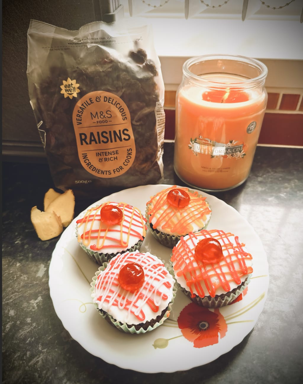 - Pour your lemon juice into a bowl and put in your raisins. Place this in the fridge whilst you make your cakes