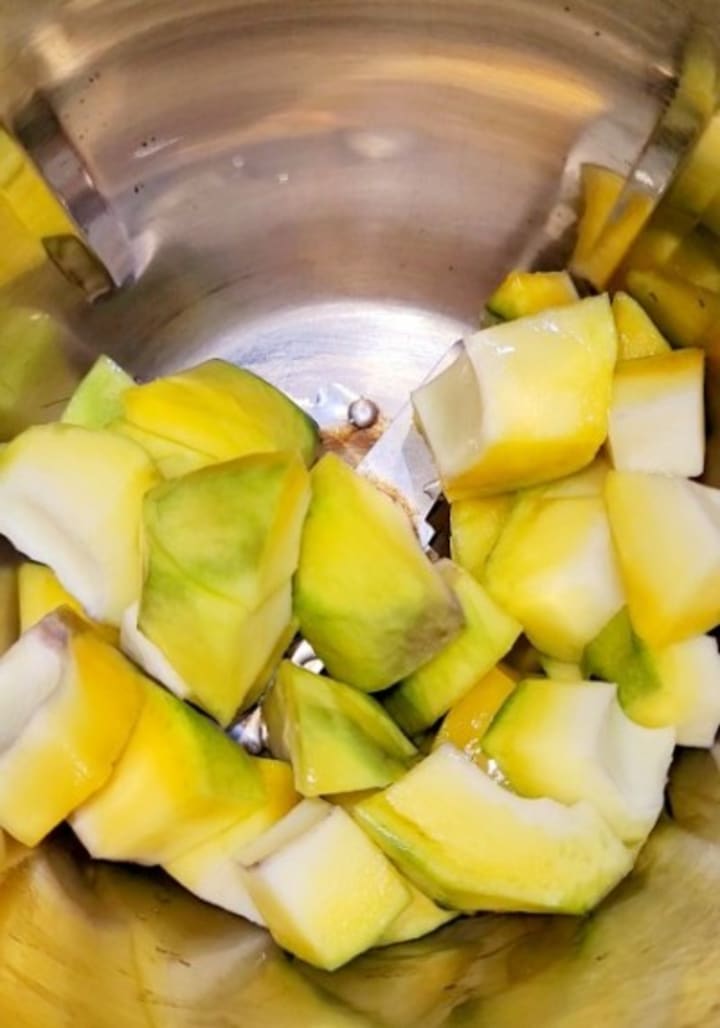 As with any culinary masterpiece, the foundation for perfection is appropriate preparation. Start by thoroughly rinsing the raw mangoes under cool running water, making sure to get rid of any traces of dirt or contaminants. To prepare the mangoes for the next stage, trim the tops where the stems originally rested.