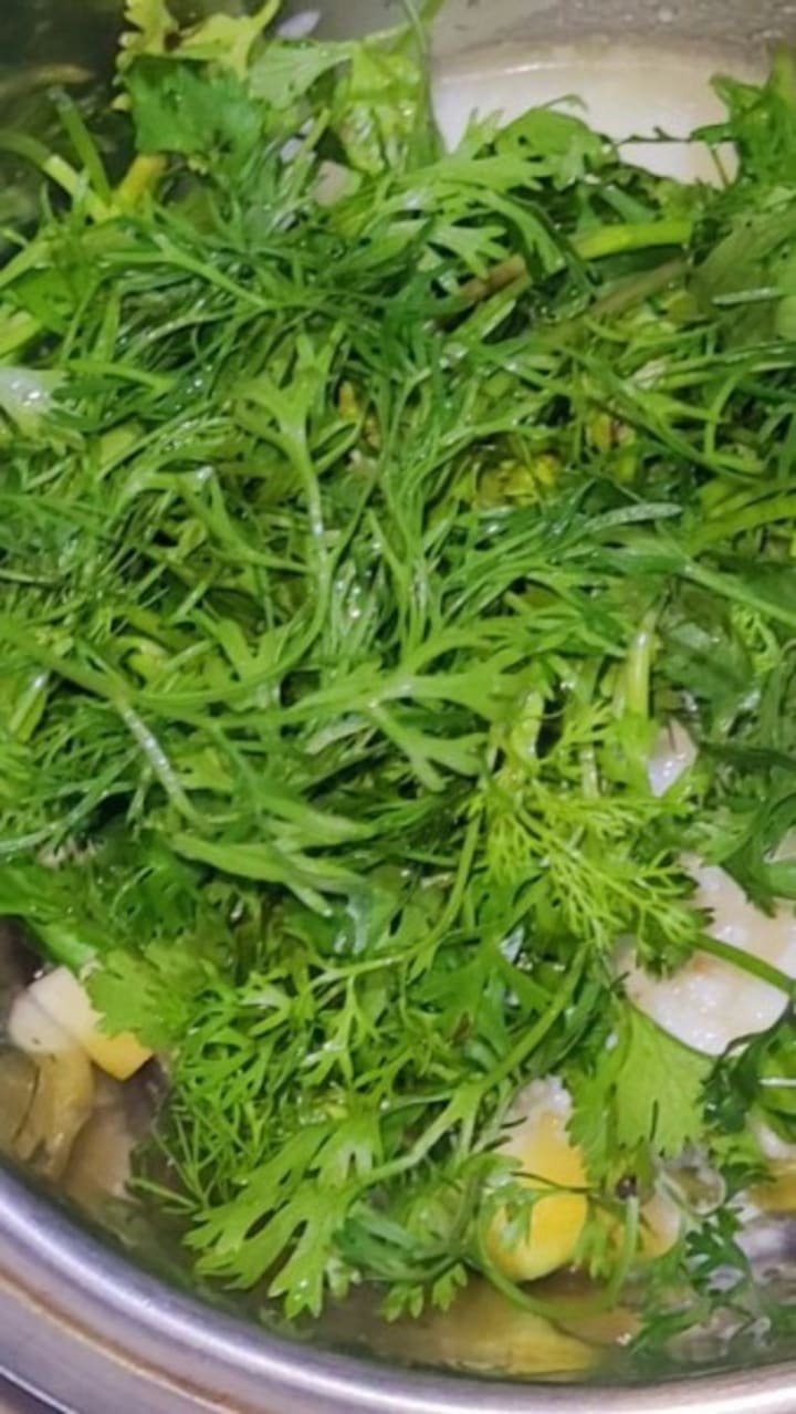The remaining 1/2 teaspoon of rose water is then added while briskly whisking the strained mixture. In addition to having a nice floral scent, rose water also brings out the aromas of mango and coriander.